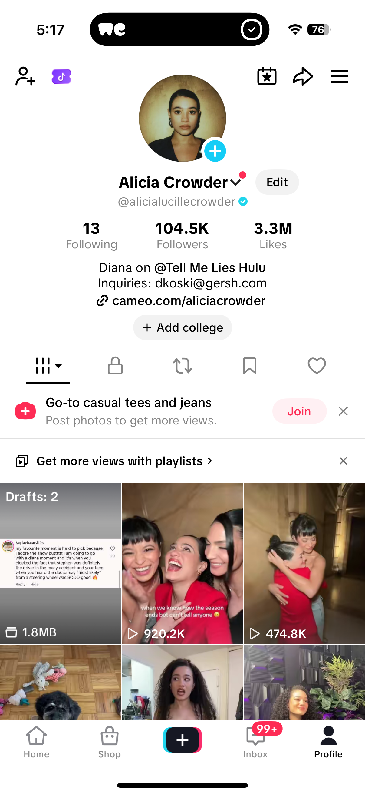 Social Media Manager for client Alicia Crowder from Hulu: Tell Me Lies from Jan-Feb 2026.